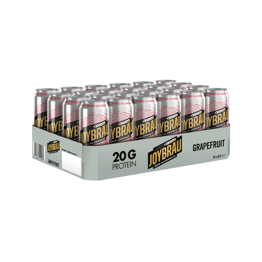 JoyBräu ist zurück! Und unser Bestseller in der Geschmacksrichtung Grapefruit ist besser denn je. Dich erwarten satte 20g Protein pro Dose mit erfrischendem Grapefruitgeschmack. Das weltweit erste Bier für deine Performance. Natürlich alkoholfrei und unter höchsten Qualitätsstandards gebraut. Denn gut war uns nicht gut genug!